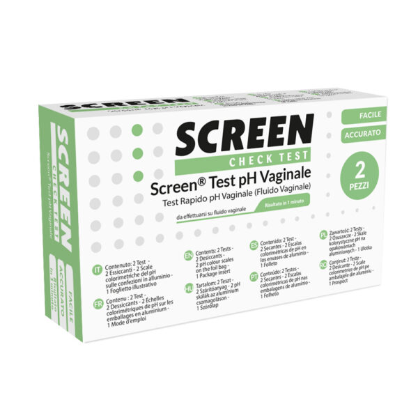 Screen Test PH Vaginale è un Dispositivo medico diagnostico in vitro CE 2265. Leggere attentamente le avvertenze e le istruzioni per l’uso.